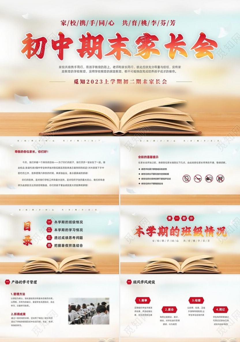 家校携手同心共育桃李芬芳初中期末家长会PPT