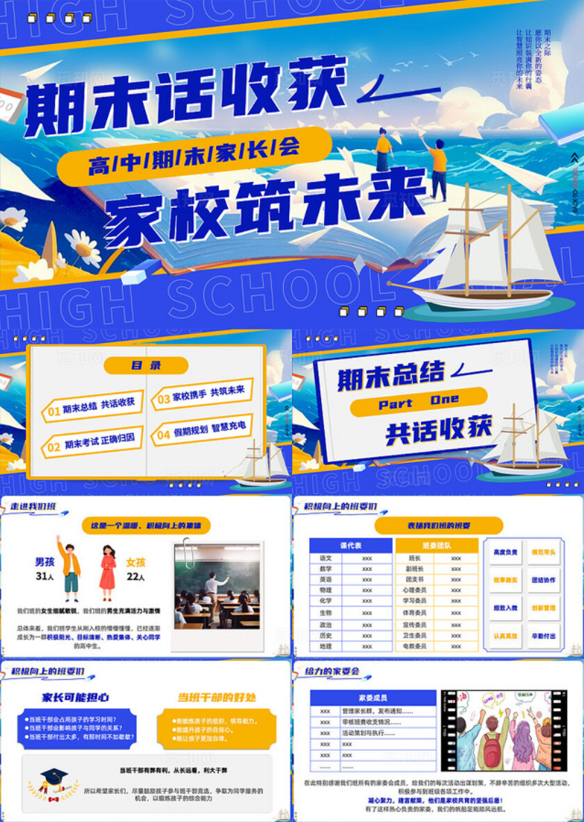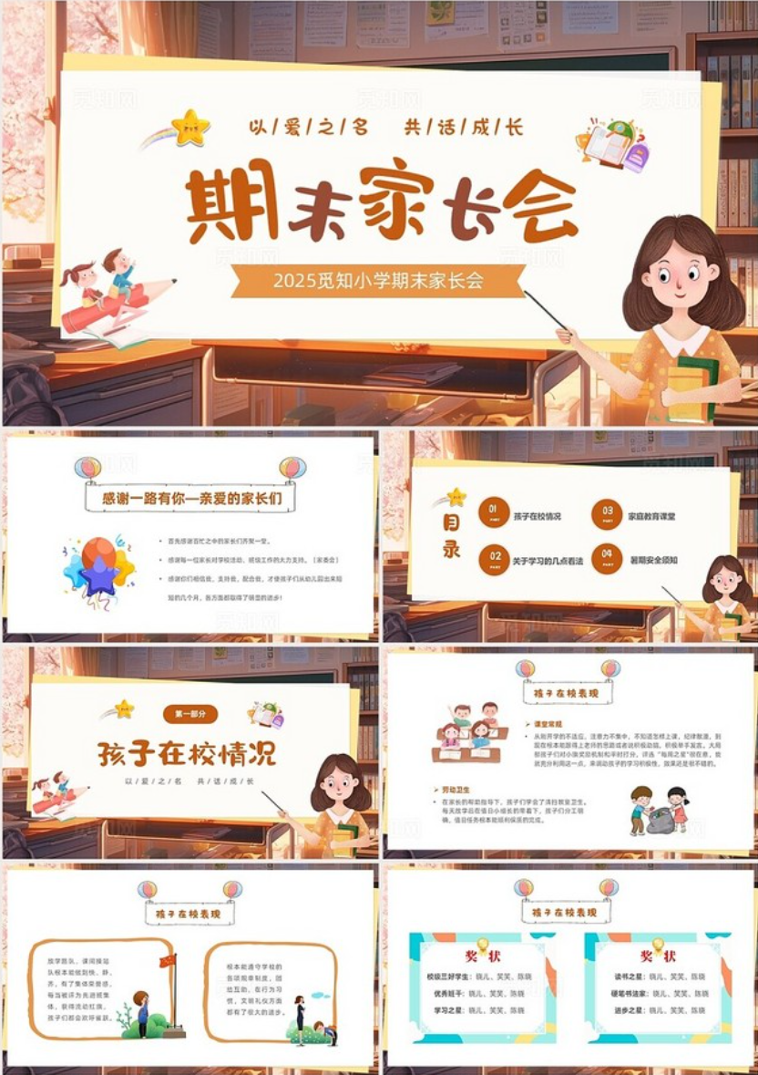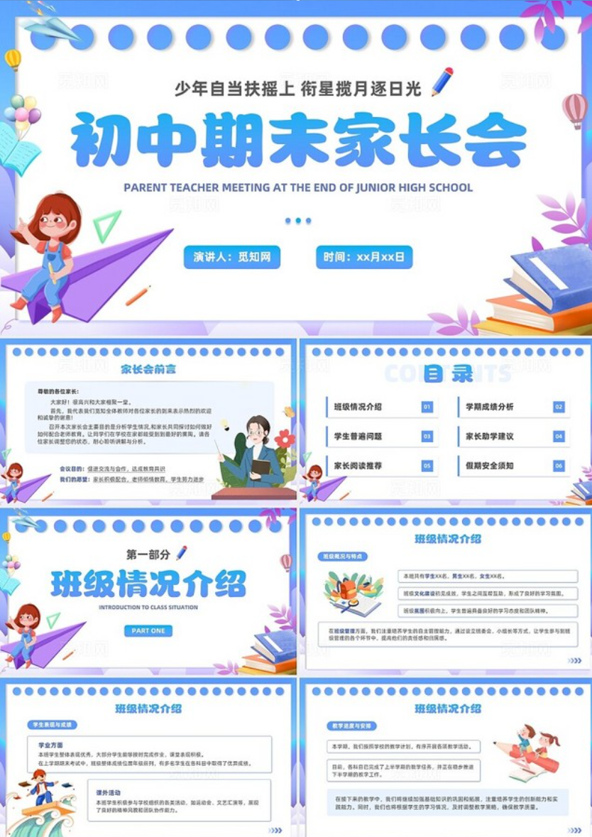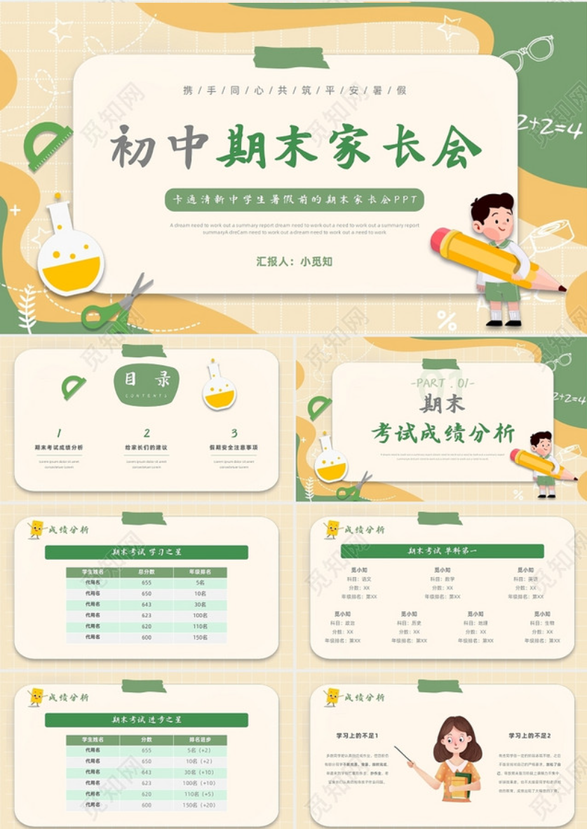 彩色卡通小清新初中生家长期末家长会通用PPT