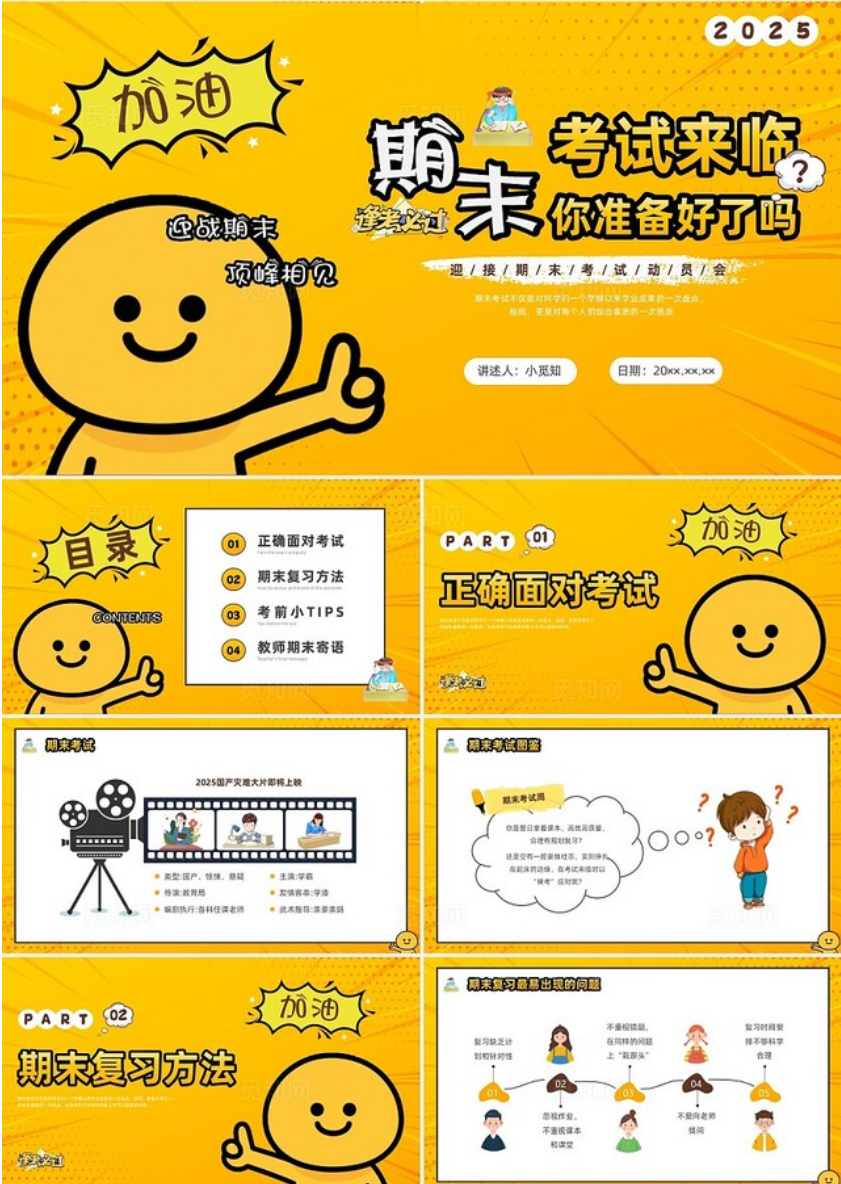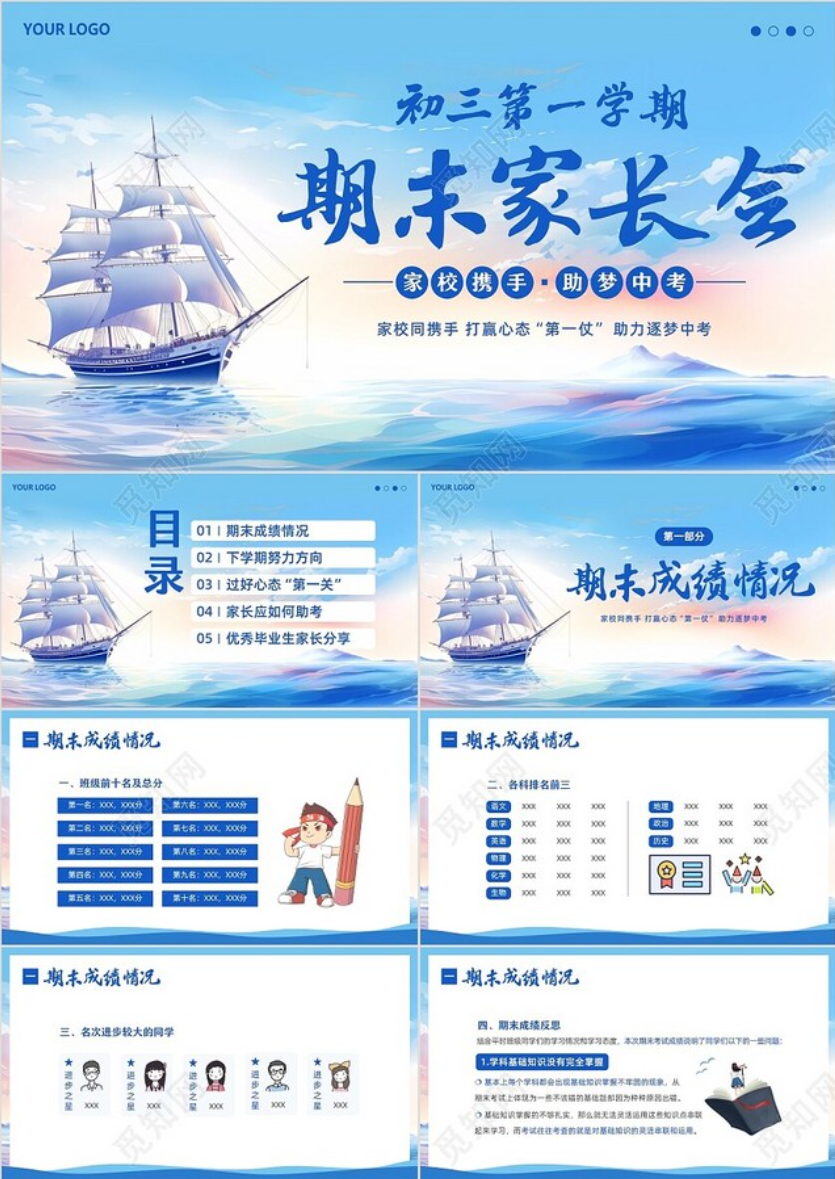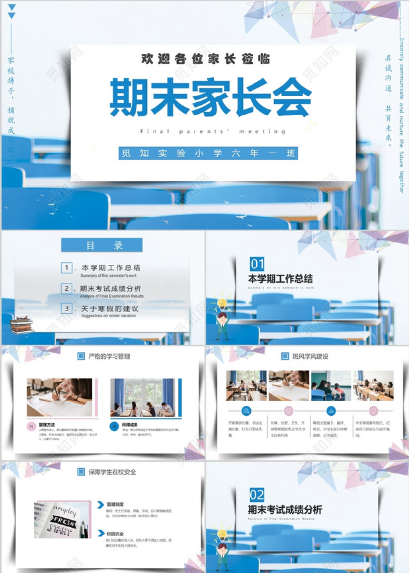 彩色卡通小清新初中生家长期末家长会通用PPT