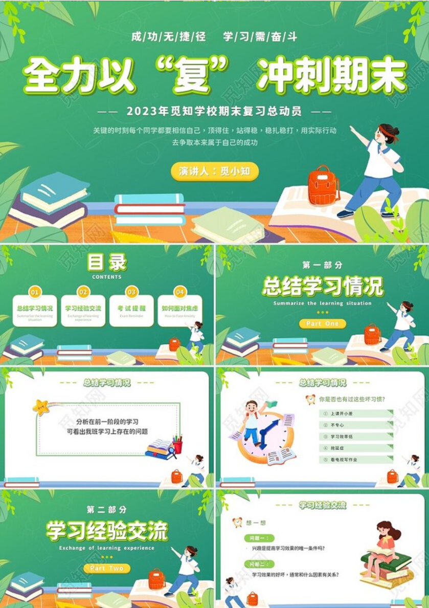 绿色黑板插画风期末复习总动员主题班会考试PPT