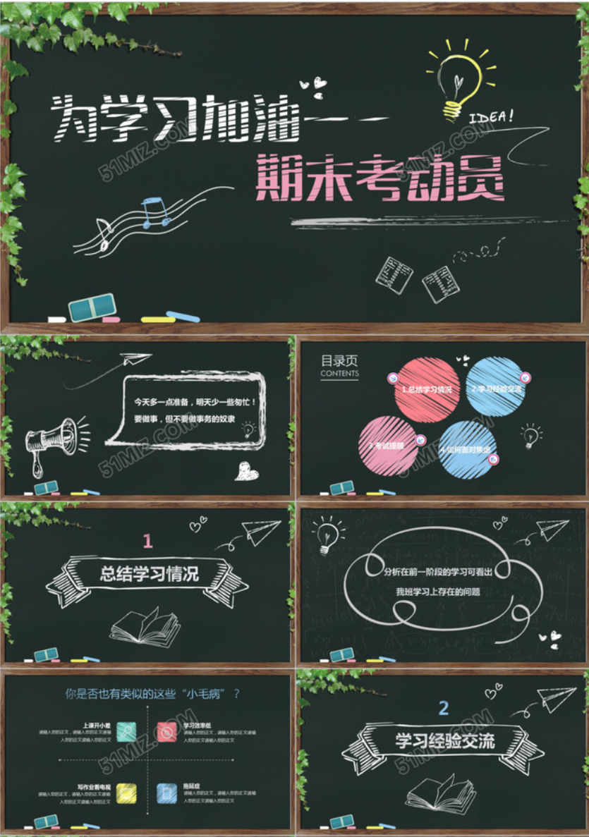 黑板风粉笔期末考试动员会主题班会期末家长会ppt