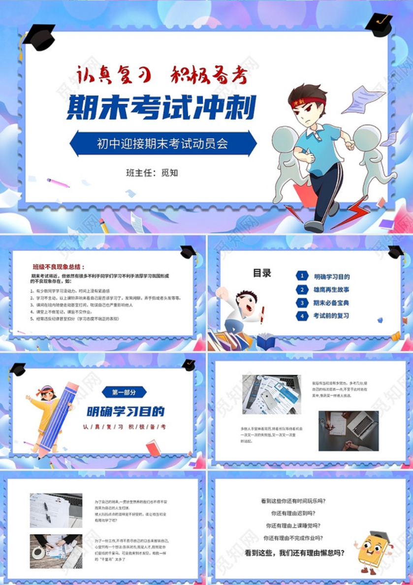 蓝色励志中小学期末考试加油冲刺动员主题班会