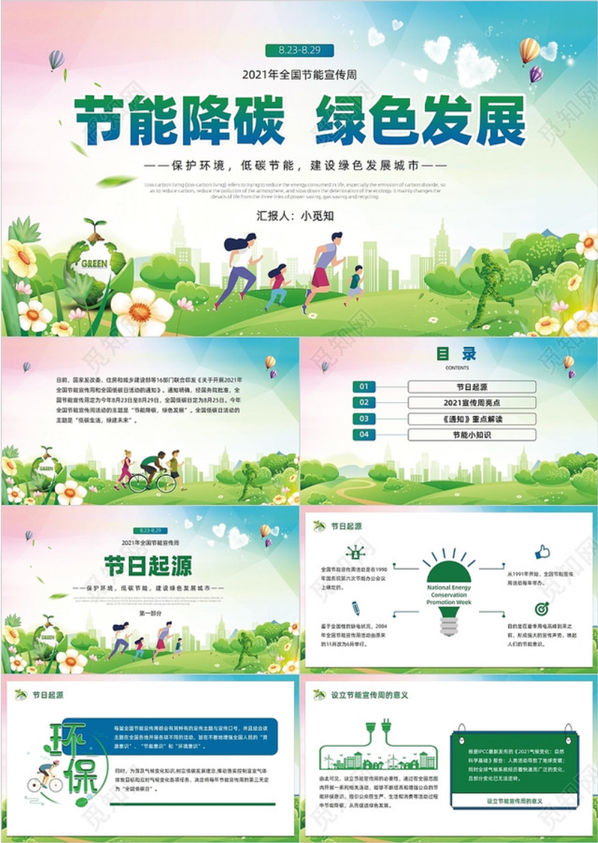 绿色简约卡通节能降碳绿色发展节能宣传周PPT