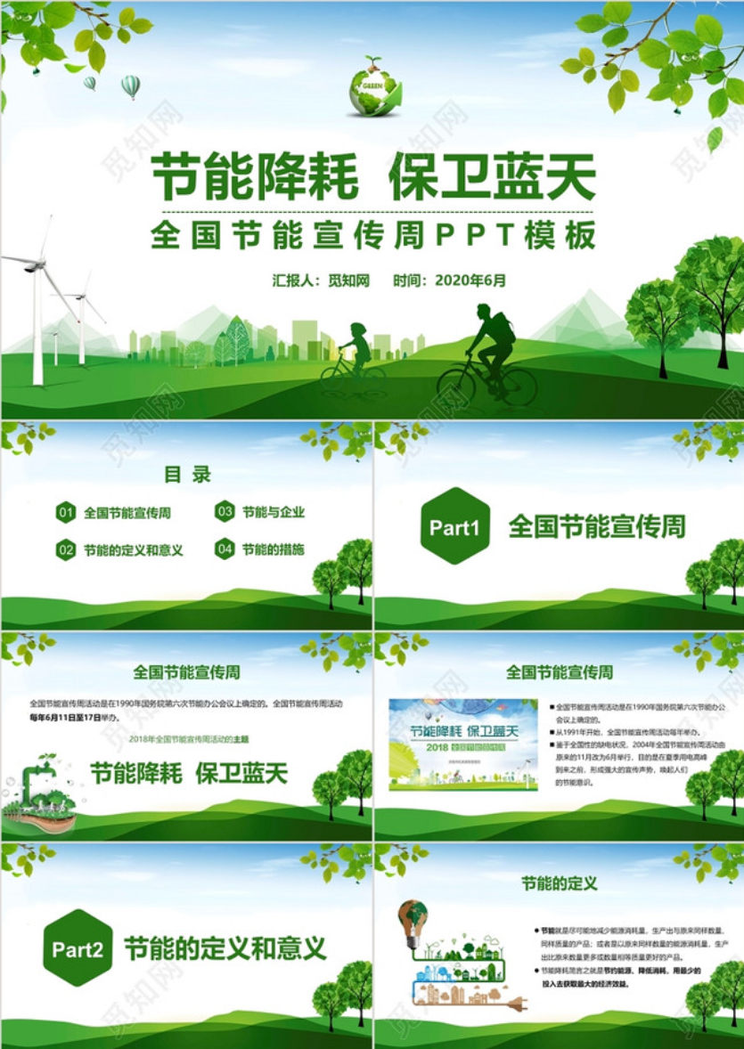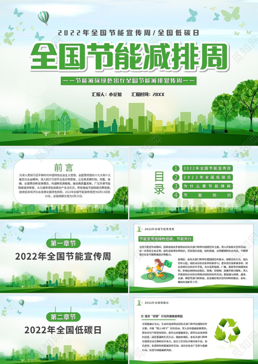 绿色渐变清新展板节能宣传周全国低碳日PPT